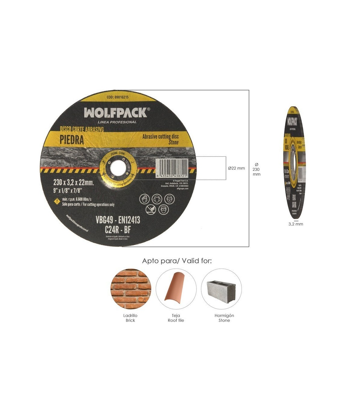 Disco Corte Abrasivo Acero Inoxidable Diámetro 115x Diámetro 22,2 mm. Espesor 1,6 mm.