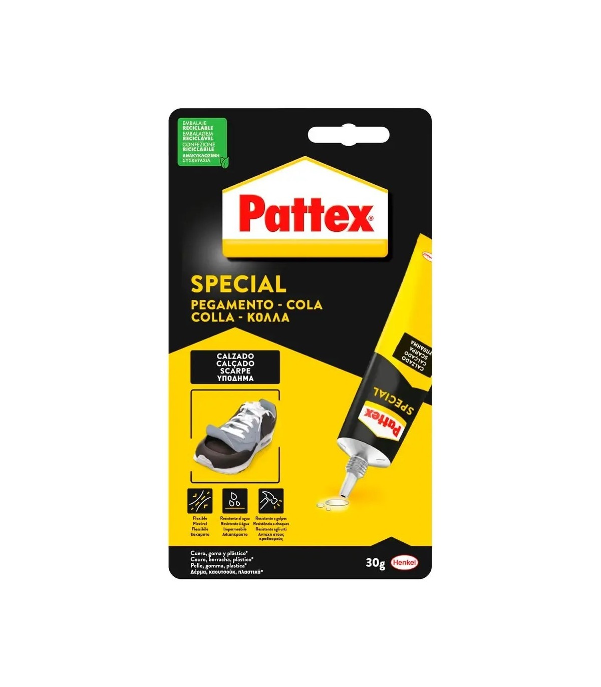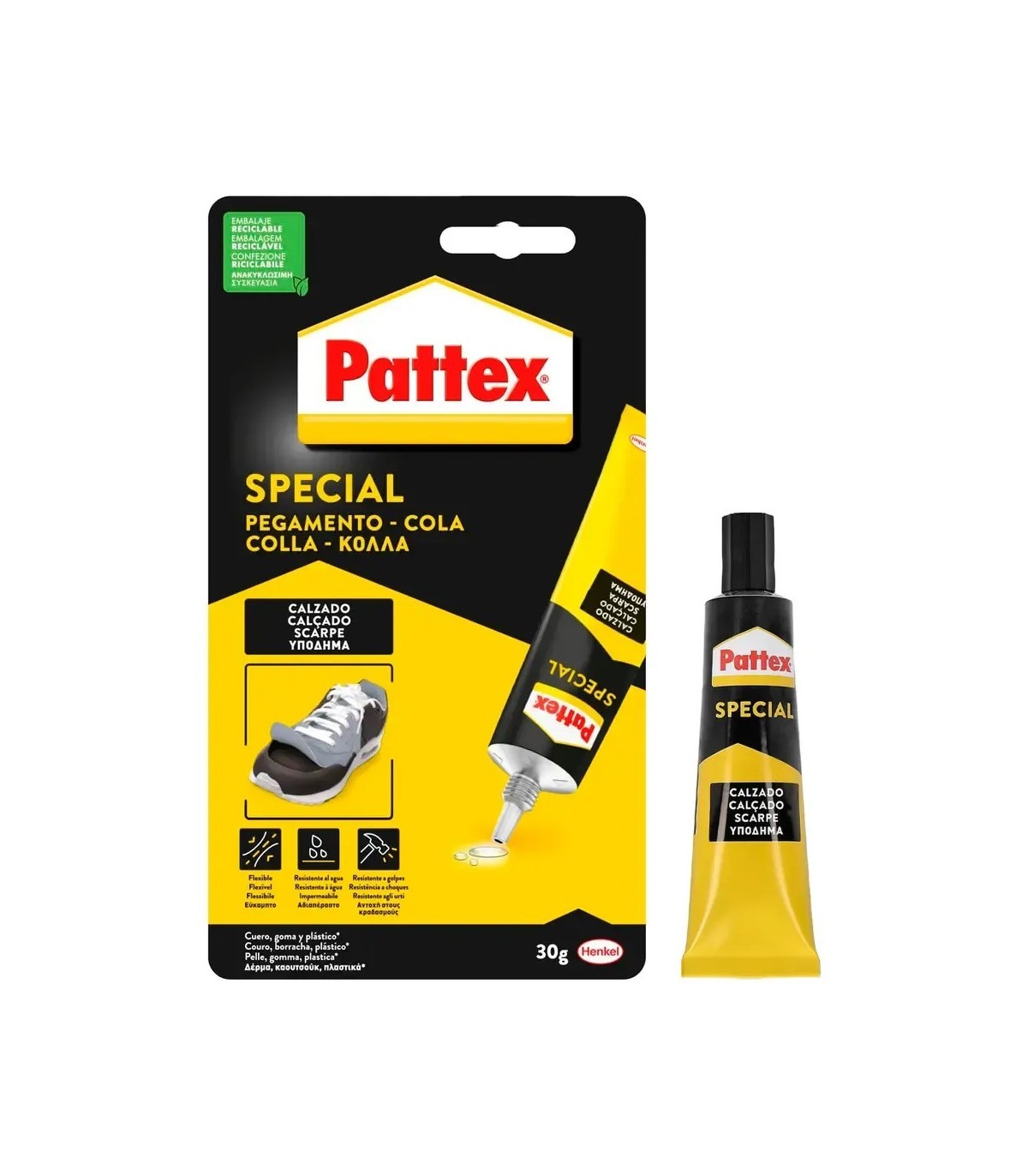El adhesivo Pattex Especial Calzado en formato blíster de 30 g es la solución ideal para quienes desean reparar su calzado de forma rápida, duradera y económica. Diseñado para unir materiales flexibles y sometidos a fricción, garantiza una adherencia fuerte sin comprometer la comodidad del zapato.